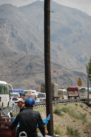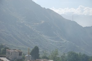 Now here’s what really happened… We left on a rough dirt road at around 5200 meters and stayed above that level and on even worse roads for hours. I had somehow forgotten th at this whole time we were on one side of the Himalaya and we needed to get to the other. This is clearly the road less traveled. We had lunch in Old Tingri (ugh, but at least they had French fries – we are done with the Yak meat for awhile), and then drove for 4-5 more hours on a combination of perfectly paved new roads and horrible detours through the desert before dropping into a gorgeous valley above the Nepal border.